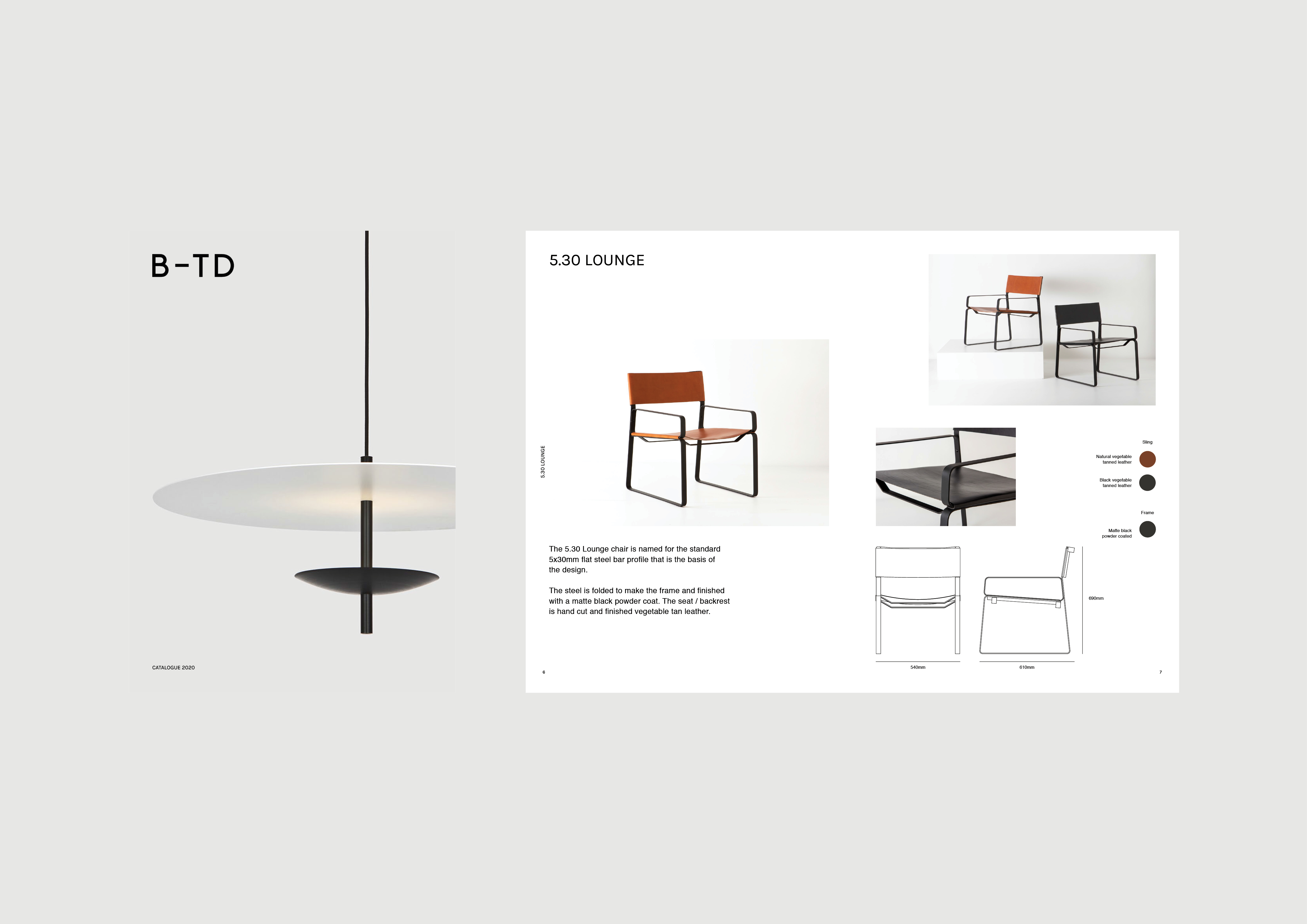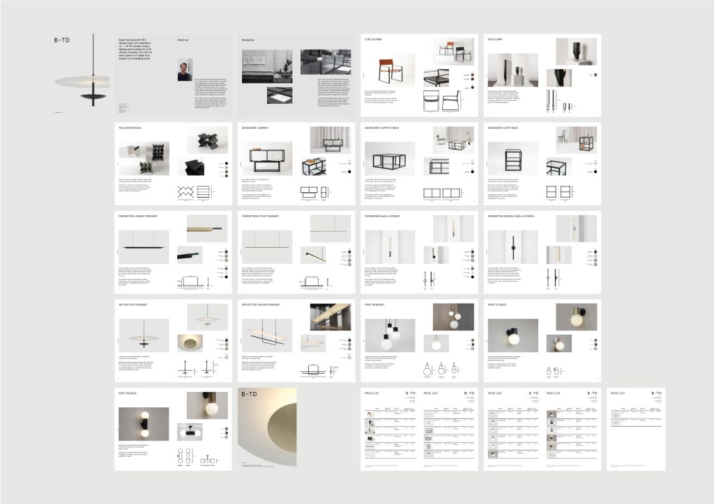 Product catalogue and price list design for Melbourne based furniture and lighting designer, B–TD.b-td.com